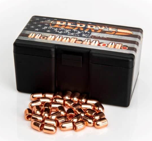 Berry’s .40 S&W/10mm .401″ 155gr HB RN projectiles are the finest bonded copper-jacketed projectiles available today. Starting with a swaged lead core, they are electroplated with copper to their final weight, leaving no lead exposure. They are then re-struck to precise specifications, ensuring a solid bond and providing consistency with every round. Indoor range safe and unbelievably accurate, Berry’s Superior Plated Bullets® are the choice of shooters everywhere.