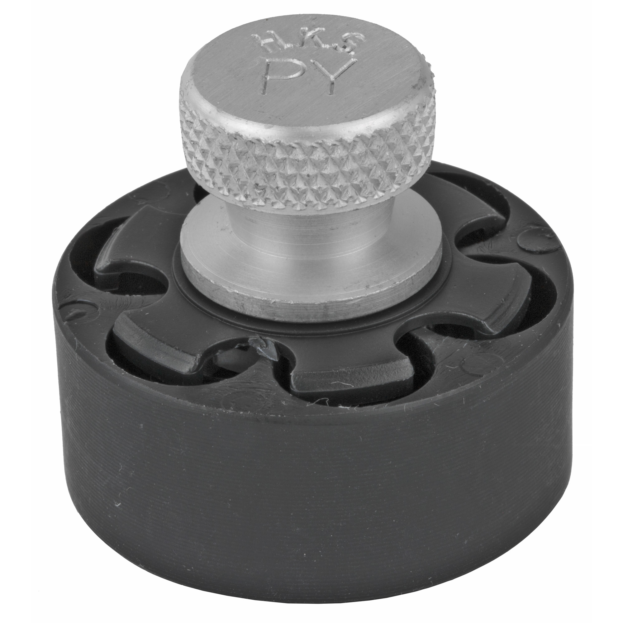 With one slight twist, the HKS Speed loader instantly loads cartridges into your revolver. Strong metal points hold cartridges securely in the loader until they are released into the revolver with a turn of the knob.