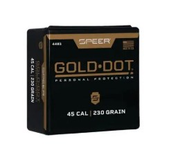 Speer’s Gold Dot 230-gr GDHP in .451″ diameter is a long-trusted bonded hollow-point bullet used widely by law-enforcement and serious civilian handloaders. The Gold Dot construction (pressure-formed, Uni-Cor bonded jacket/core) reduces jacket/core separation and promotes consistent expansion and penetration across a broad range of velocities — and the Short-Barrel (SB) variant increases cavity volume and expansion reliability at the lower velocities typical of short-barrel handguns. These bullets are perfect for reloaders developing duty/self-defense loads or for agencies that reload for duty ammo.