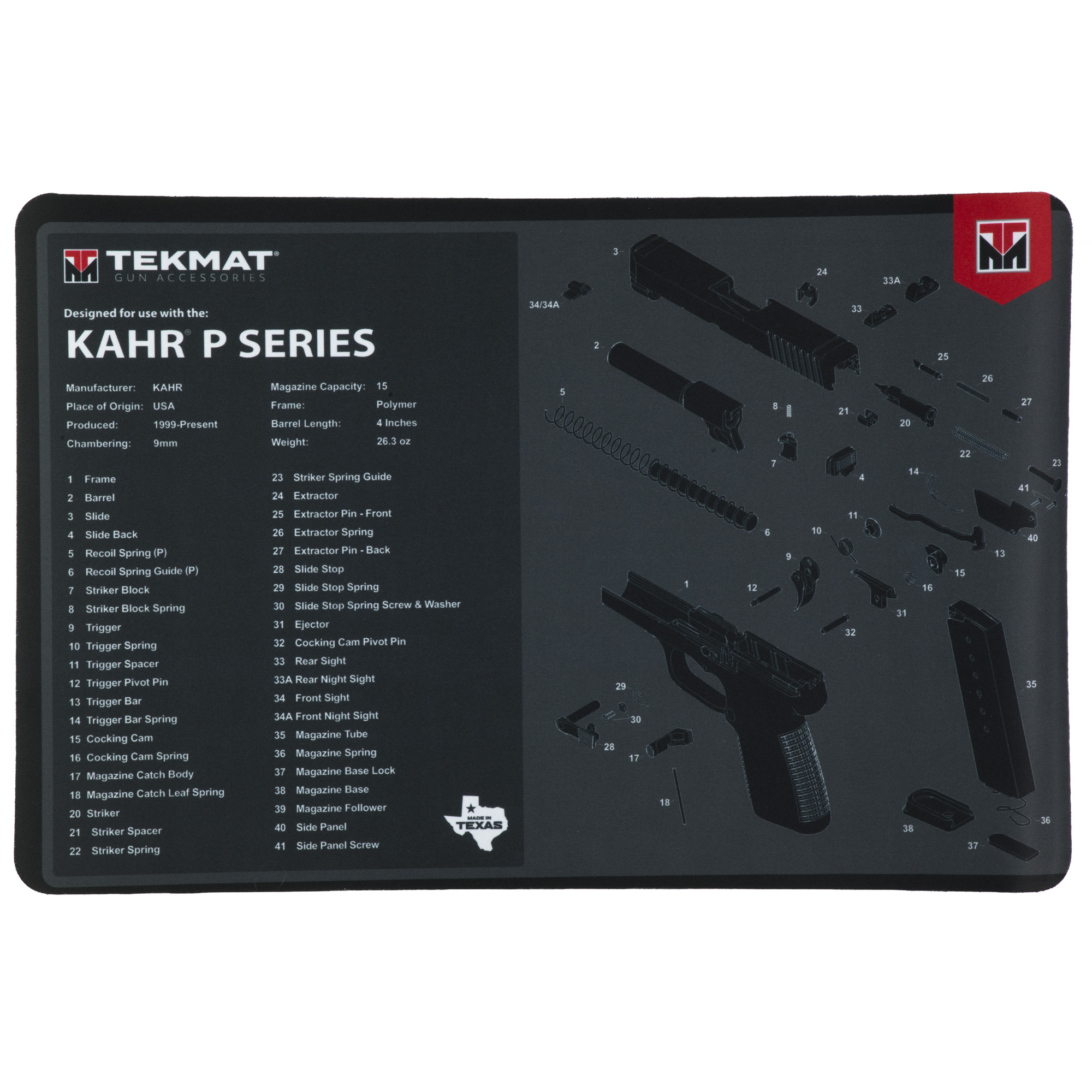 The TekMat has a soft thermoplastic fiber surface that will protect your firearm and wont stain from grease and oil. The neoprene rubber substrate gives TekMat the padding you need to keep your gun, as well as your kitchen table, safe from dings and scratches. And to take it one step further, TekMat was designed with an exploded parts diagram of your firearm so you could take the gun apart to clean it, as well as put it back together without ever having to try and find the owners manual. TekMats use a dye-sublimation printing process which embeds the ink into the surface material so you dont have to worry about the printing coming off the mat.